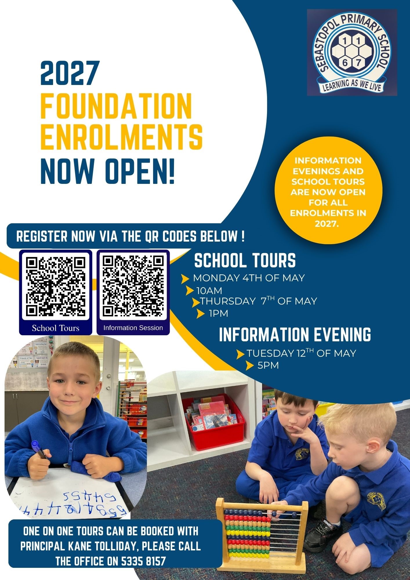 Sebastopol Primary School will be conducting school tours on Monday 4th of May at 10AM and Thursday 7th of May at 1PM for students commencing school in 2027.